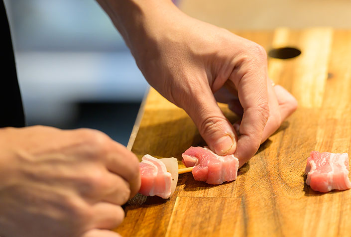 串の打ち方一つで、焼鳥の味わいは大きく変わります。